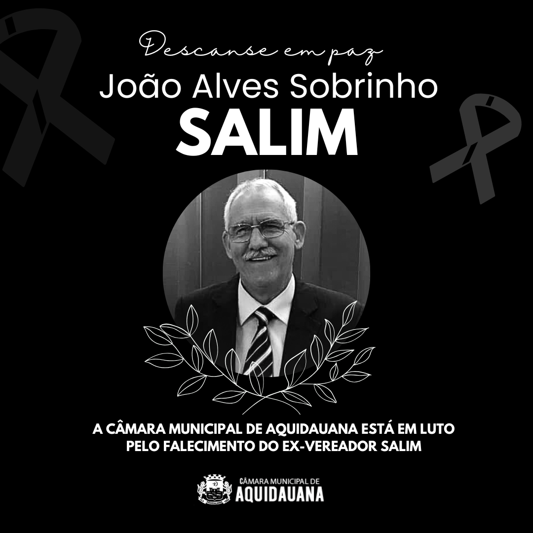 A Câmara Municipal de Aquidauana, por meio do presidente Everton Romero, Mesa Diretora e demais vereadores, manifesta profundo pesar pelo falecimento do ex-vereador João Alves Sobrinho, conhecido carinhosamente como Salim.