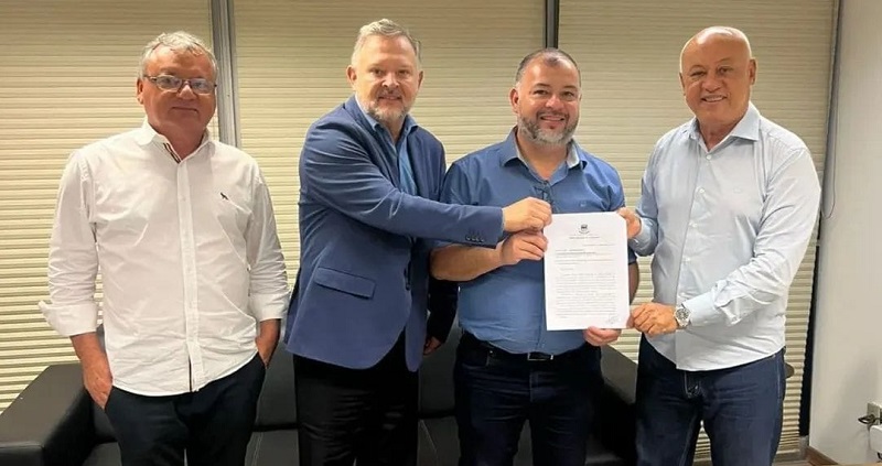 Foto: Registro do momento em que o vereador Everton Romero entregou o oficio ao presidente da AGEMS – Carlos Alberto Assis.