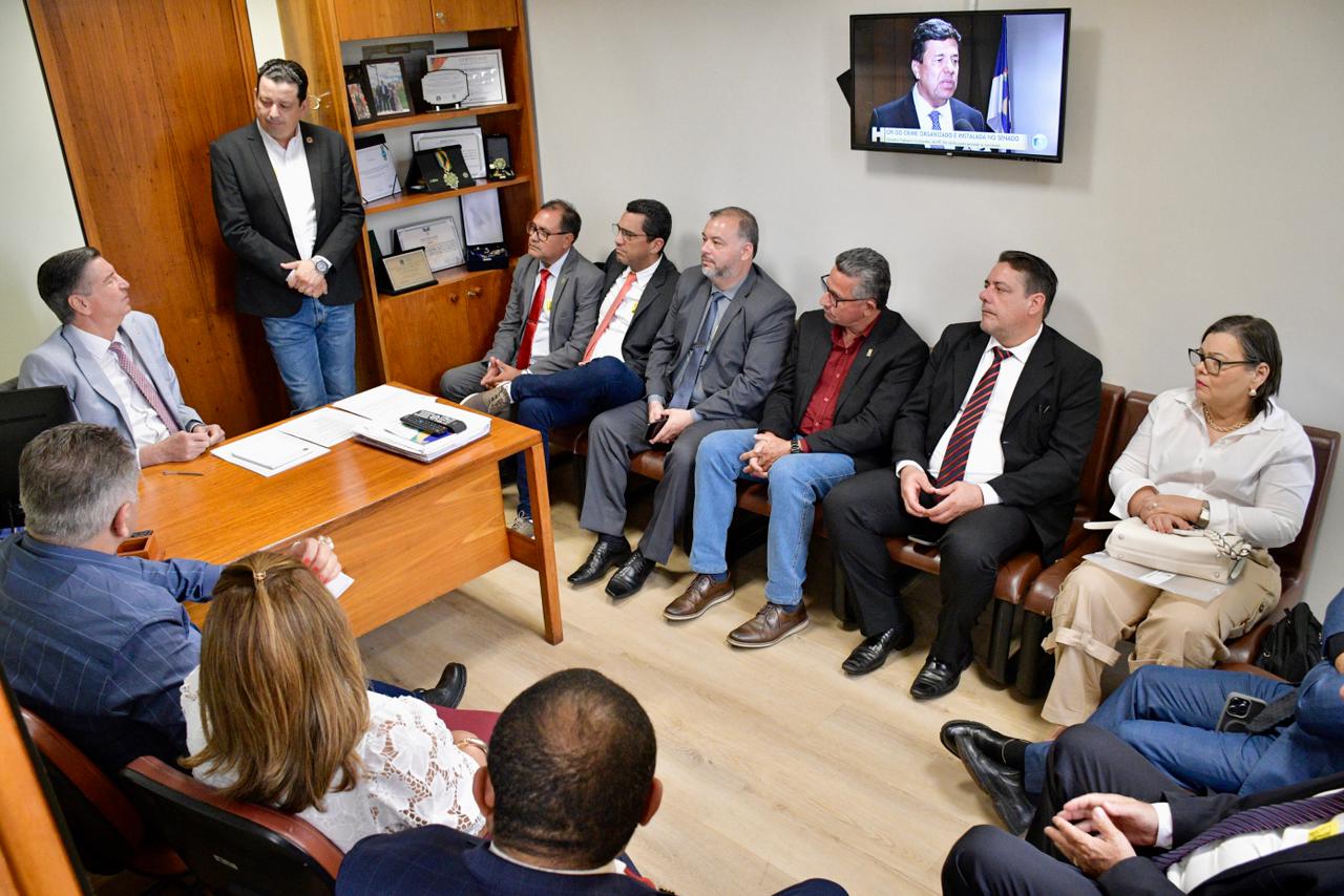 Durante o encontro, a comitiva solicitou o apoio do parlamentar para viabilizar a cessão de uma área pertencente à Rede Ferroviária Federal, atualmente sob responsabilidade da empresa Rumo Logística, destinada à implantação de um estacionamento público na área central da cidade.