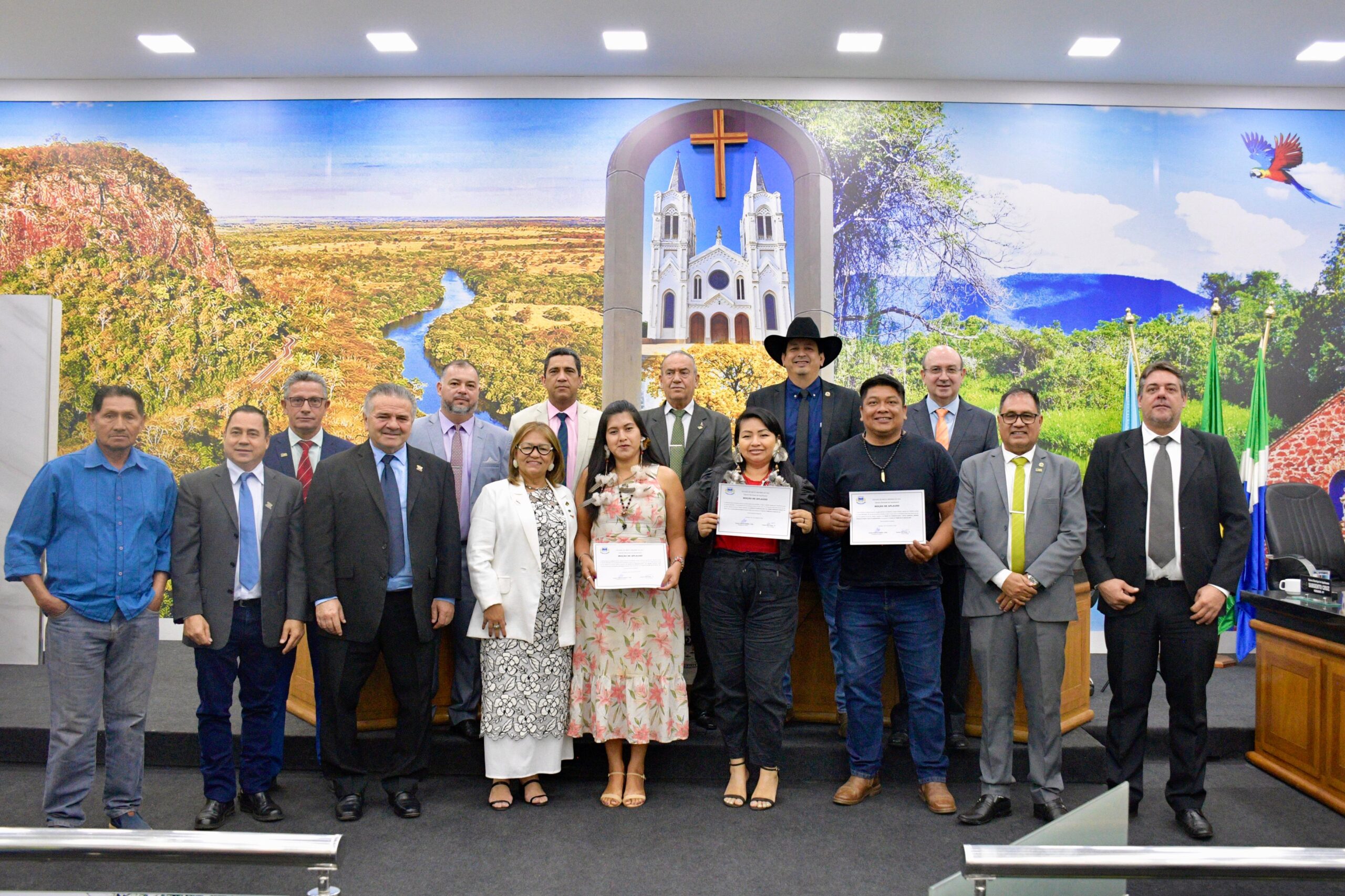 Aprovada por unanimidade pelos vereadores, a Moção de Congratulação, para as profissionais da Escola Municipal Indígena Francisco Farias, localizada na Aldeia Água Branca do território indígena Ipegue, se faz diante da conquista do 1º lugar no Prêmio MS Alfabetiza 2025.