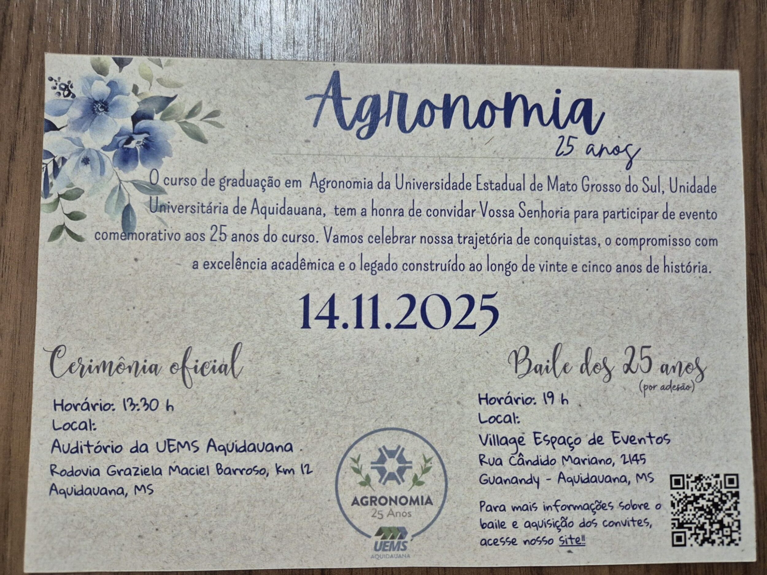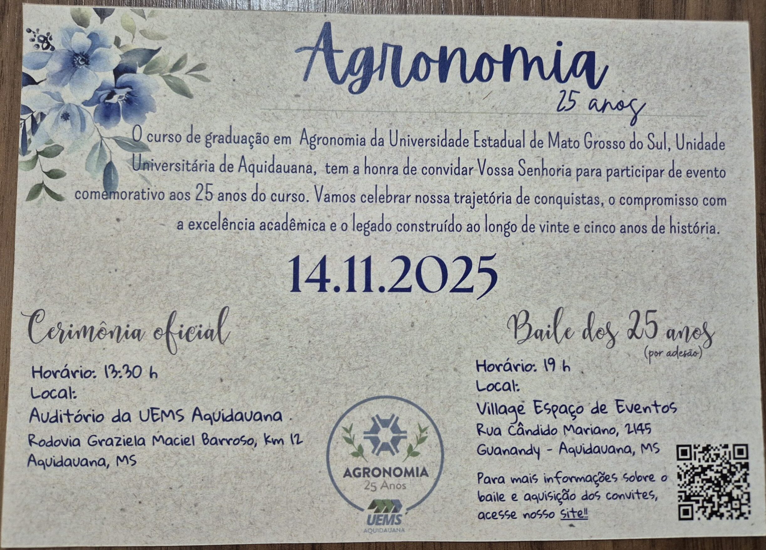 Jubileu de Prata! O Curso de Agronomia da Universidade Estadual de Mato Grosso do Sul (UEMS), unidade de Aquidauana, celebra 25 anos de história neste mês de novembro.