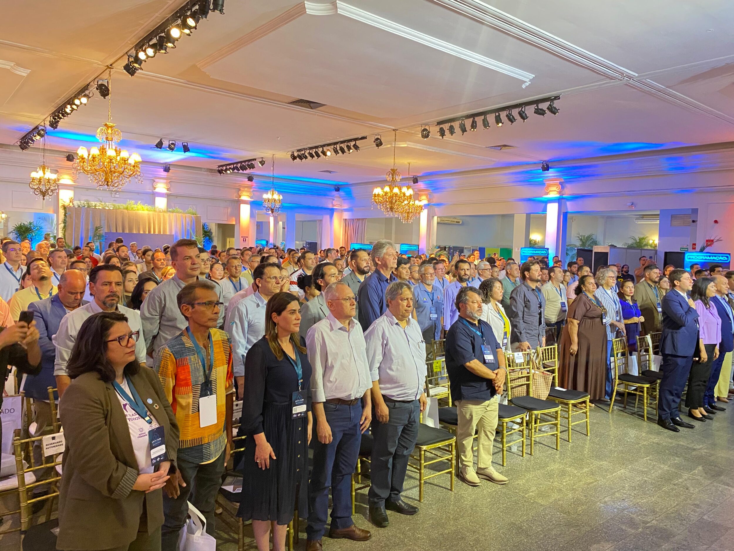 Após a cerimônia inicial, o governador Eduardo Riedel ministrou a palestra de abertura, apresentando uma análise detalhada do cenário estadual e apontando os eixos de crescimento que as prefeituras e câmaras devem observar para garantir investimentos e progresso regional.